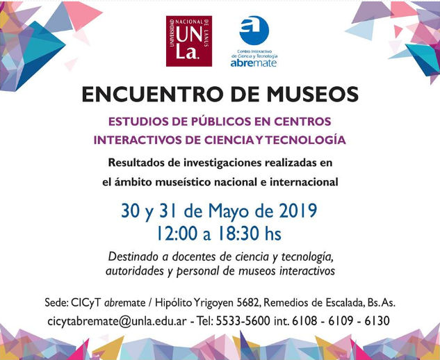 Encuentro de Museos 2019 presentara estudios de públicos en centros interactivos de ciencia y tecnología. Resultado de investigaciones realizadas en el ámbito museístico nacional e internacional. Es un evento destinado a docentes de ciencia y tecnología, autoridades y personal de museos interactivos.