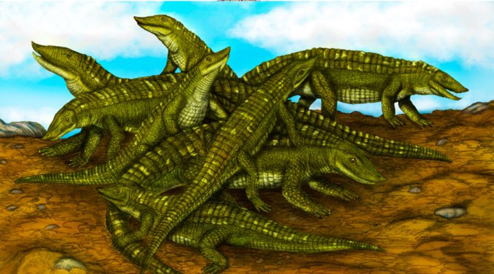 En el mismo sentido, la experta apunta que, por la distribución de los esqueletos, “La muerte pudo haber sido por algún evento ambiental que los tomó por sorpresa. Algunos estaban recostados, otros parados. Podemos decir que murieron todos juntos en el acto. Efectivamente se trataba de una agrupación biológica de la misma especie formada por individuos de pocos meses y menos de un año, es decir, una probable guardería”. Esto constituye el otro dato relevante del trabajo que es aportar por primera vez la evidencia de que los aetosaurios, en particular, y los arcosaurios pseudosuquios (ancestros de los cocodrilos que vivieron en el Triásico), en general, tenían hábitos gregarios, al menos en las primeras etapas de vida: “Es un tipo de comportamiento que vemos en muchos animales actuales, como tortugas y cocodrilos, que viven juntos desde que nacen hasta varios meses después”, apunta.