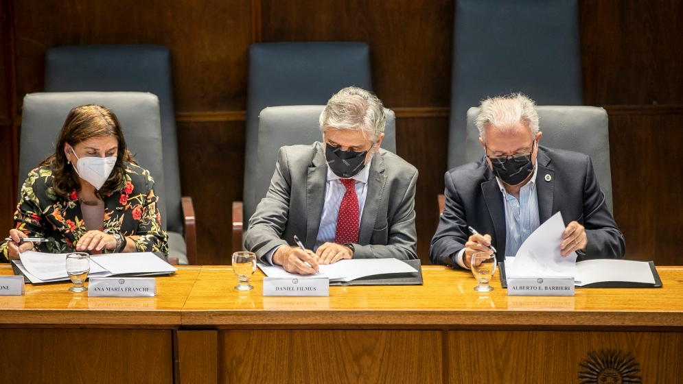 En el Aula Magna de la Facultad de Odontología de la Universidad de Buenos Aires (UBA), se firmó un convenio de cooperación entre el Consejo Nacional de Investigaciones Científicas y Técnicas (CONICET), el Ministerio de Ciencia, Tecnología e Innovación (MINCyT) y la Universidad de Buenos Aires (UBA), para la construcción de un Centro de Laboratorios Unificados de Ciencias de la Salud en Ciudad Universitaria, y del nuevo edificio del Instituto de Investigaciones Gino Germani (IIGG) en la sede de la calle Santiago del Estero de la Facultad de Ciencias Sociales.