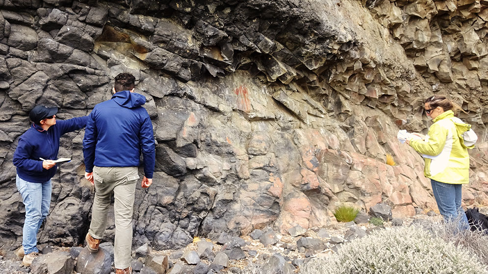El campo volcánico Pali Aike está ubicado en la zona más austral del desierto patagónico, en el límite entre la provincia de Santa Cruz y la región chilena de Magallanes, a pocos kilómetros del estrecho del mismo nombre. Un paisaje desafiante en el que cuesta imaginarse, a ojos del presente, cómo era la vida de las personas que hace miles de años lo transitaban en busca de alimento y refugio. Pero la arqueología, y en particular el estudio del arte rupestre, brinda conocimiento acerca de la cotidianidad de estas comunidades nómades del pasado, al investigar señales que quedaron plasmadas en cuevas, aleros y paredones. El análisis se centra tanto en forma, tamaño, y distribución en el espacio de estas representaciones, como en la antigüedad y composición de las mezclas pigmentarias.
