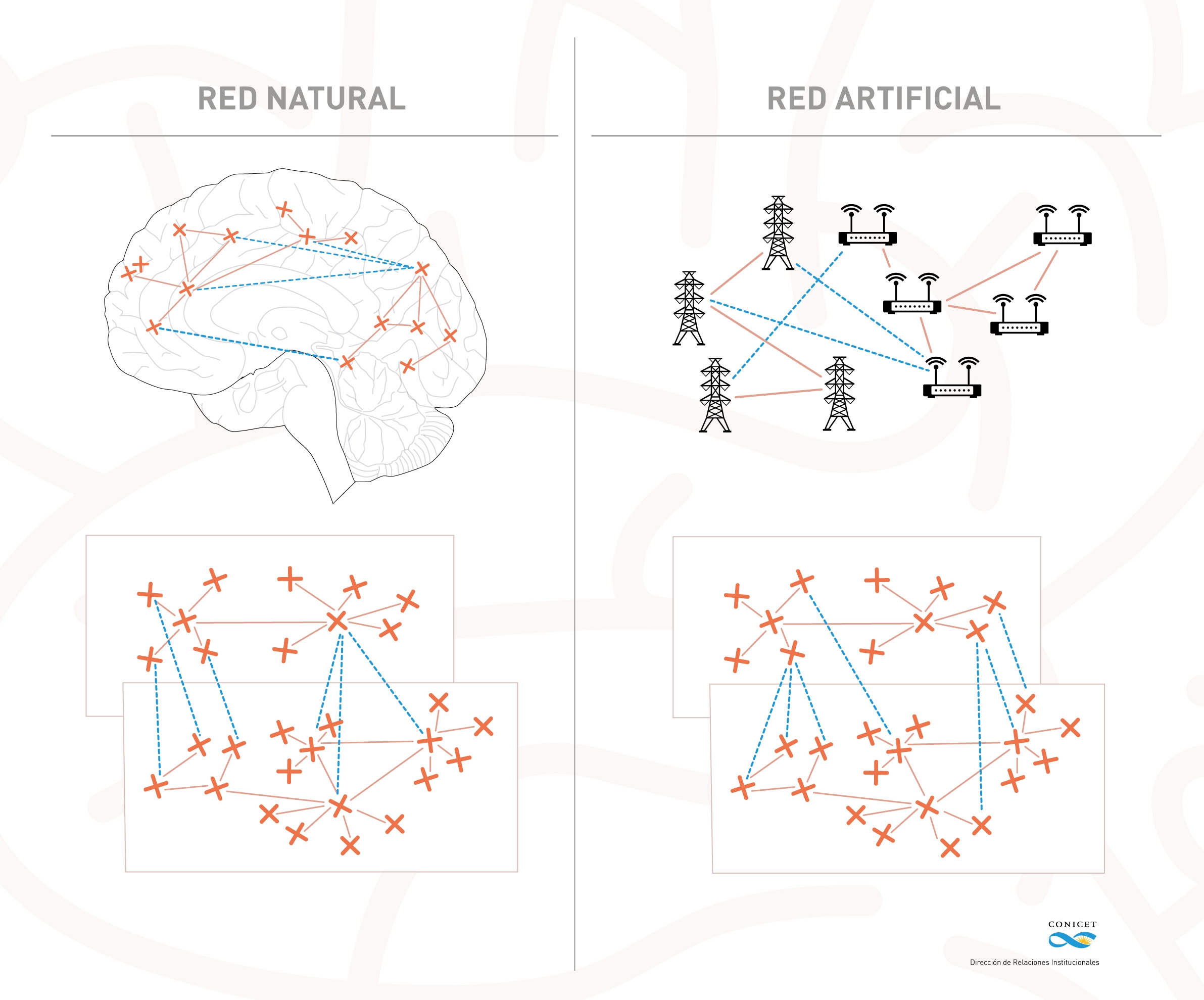 Mariano Sigman y Andrés Babino, investigador independiente y becario doctoral, respectivamente, del Departamento de Física de la Facultad de Ciencias Exactas y Naturales de la Universidad de Buenos Aires (UBA-CONICET) lograron, a partir de analizar conexiones cerebrales, determinar de qué manera deberían estructurarse las redes artificiales para prevenir fallas catastróficas.