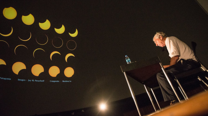 The conference that the William Collage’s professor gave at the Planetarium was received by the public with delight. He made a review across the most important eclipses that he experienced in the past years. He put emphases in the total eclipse occurred on the 21st of August of last year in the USA, which could be observed from coast to coast, and in the annular eclipse that took place in Chubut, Argentina, the 26th of February, also in 2017. The one of the 15th was his eclipse number 67.