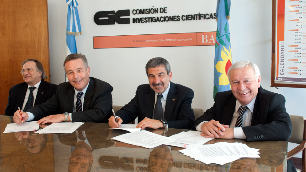 El presidente del Consejo Nacional de Investigaciones Científicas y Técnicas (CONICET), Dr. Roberto Salvarezza, firmó con el vicepresidente de la Universidad Nacional de La Plata (UNLP), Dr. Fernando Tauber; y con la máxima autoridad de la Comisión de Investigaciones Científicas de la Provincia de Buenos Aires (CICPBA), Ing. Agr. José María Rodríguez Silveira; un convenio para profundizar las acciones de promoción y ejecución de tareas de investigación científica y tecnológica, la transferencia de los resultados al medio socio-productivo y la formación de recursos humanos.