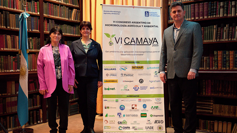 Entre el 24 y el 26 de septiembre se llevó a cabo, en la Ciudad Autónoma de Buenos Aires, el VI Congreso Argentino de Microbiología Agrícola y Ambiental (VI CAMAyA 2025), organizado por la División Microbiología Agrícola y Ambiental de la Asociación Argentina de Microbiología (AAM), en el marco de su 20° aniversario. Del encuentro, celebrado bajo el lema “Del ambiente a la aplicación: microorganismos para el desarrollo sustentable”, participaron numerosos investigadores del CONICET y de otras instituciones académicas, tanto nacionales como internacionales, quienes disertaron sobre los últimos avances científicos y tecnológicos en el campo de la microbiología aplicada. Asimismo, contó con el financiamiento del Consejo a través del programa para la organización de Reuniones Científicas y Tecnológicas. Los ejes centrales fueron el rol de los microorganismos en la bioeconomía y la producción sustentable; el potencial de la biodiversidad microbiana como recurso para enfrentar desafíos ambientales; y el papel de la microbiología básica y aplicada en el marco del enfoque “Una Salud”.