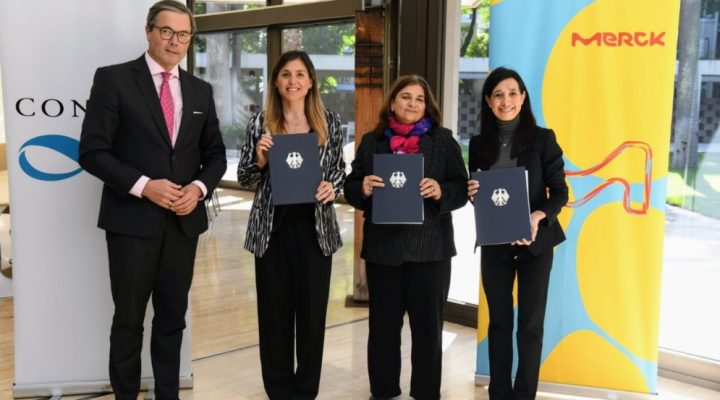 En un acto realizado en la Embajada de la República Federal de Alemania, el Consejo Nacional de Investigaciones Científicas y Técnicas (CONICET), representado por su presidenta Ana Franchi rubricó el convenio con la compañía alemana Merck que estuvo representada por la Directora General del Grupo en Argentina María Sol Quibel y con el Ministerio de Ciencia, Tecnología e Innovación de la Nación (MINCyT) representado por la directora Nacional de Promoción de la Política Científica Karina Pombo -en representación del ministro Daniel Filmus- para fomentar la tercera edición del “Premio Merck-MINCyT-CONICET de Innovación en ciencias de la salud 2023”.