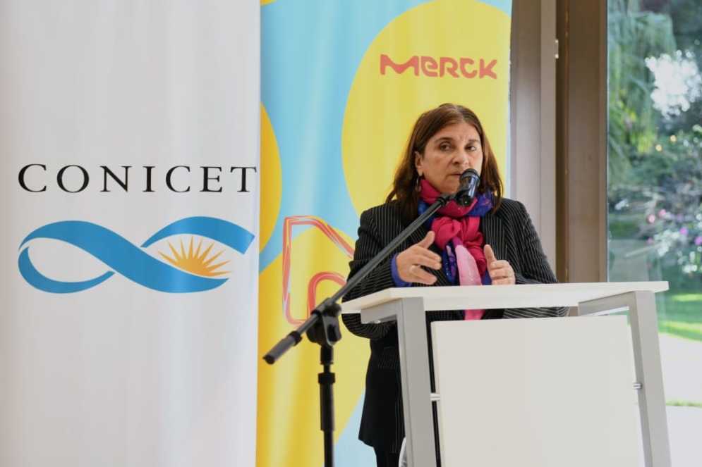 La presidenta del CONICET Ana Franchi agradeció a Merck por la continuidad, al MINCyT y la Embajada por el apoyo y destacó la importancia de la articulación público-privada. Y sostuvo: “Es una alegría que haya una nueva convocatoria del Premio Merck-MINCyT-CONICET porque muestra algo que es fundamental para el desarrollo de la ciencia y la tecnología que es la continuidad. Que la ciencia y la tecnología sean previsibles es importante y cada discontinuidad implica sueños frustrados de personas que se preparan para trabajar en ciencia y tecnología para su país. Este Gobierno apoya a la ciencia y la tecnología y se apoya en ella. Es imposible pensar en el progreso de un país soberano, justo e inclusivo sin el desarrollo de la ciencia”. Además, destacó el apoyo a jóvenes científicos y científicas que implica el premio y remarcó su carácter federal.
