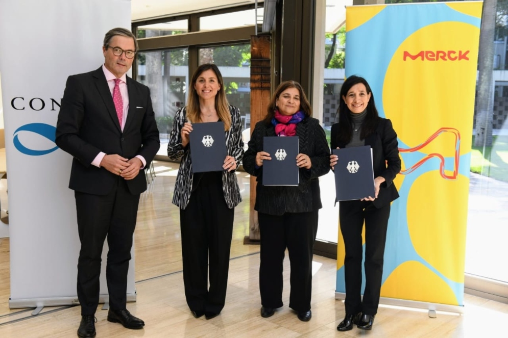 En un acto realizado en la Embajada de la República Federal de Alemania, el Consejo Nacional de Investigaciones Científicas y Técnicas (CONICET), representado por su presidenta Ana Franchi rubricó el convenio con la compañía alemana Merck que estuvo representada por la Directora General del Grupo en Argentina María Sol Quibel y con el Ministerio de Ciencia, Tecnología e Innovación de la Nación (MINCyT) representado por la directora Nacional de Promoción de la Política Científica Karina Pombo -en representación del ministro Daniel Filmus- para fomentar la tercera edición del “Premio Merck-MINCyT-CONICET de Innovación en ciencias de la salud 2023”.
