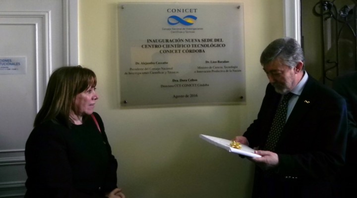 El pasado martes 2 de agosto, el presidente del Consejo Nacional de Investigaciones Científicas y Técnicas (CONICET), Dr. Alejandro Ceccatto, y la directora del Centro Científico Tecnológico CONICET Córdoba, Dra. Dora Celton, inauguraron la nueva sede del CCT, cita en la calle Buenos Aires 1418 de la ciudad de Córdoba.