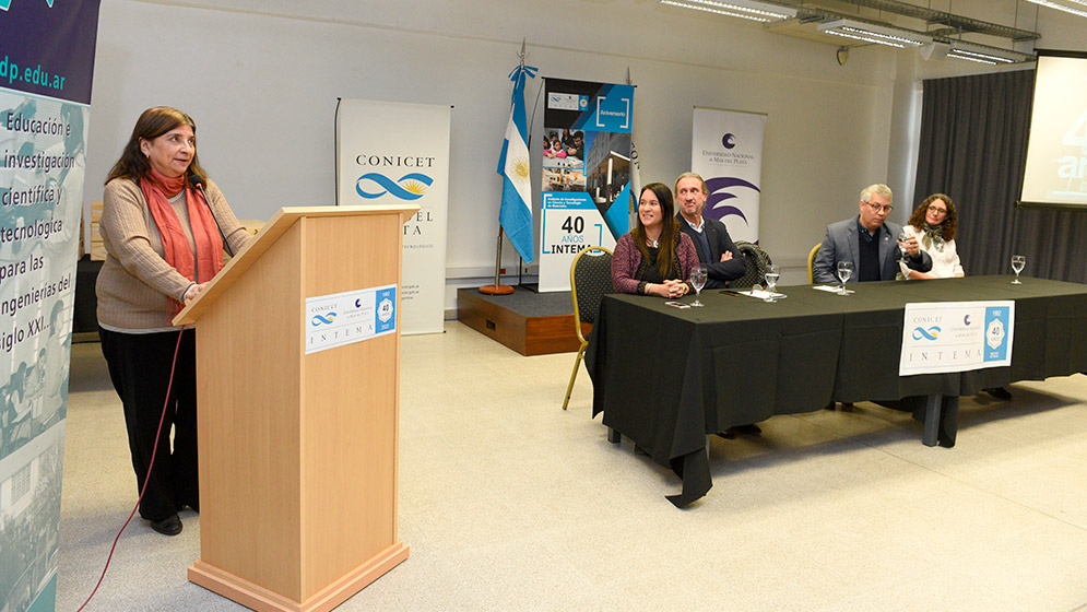 El Instituto de Investigaciones en Ciencia y Tecnología de Materiales (INTEMA, CONICET-UNMDP) celebró sus primeros 40 años. El acto contó con la presencia de la presidenta del Consejo Nacional de Investigaciones Científicas y Técnicas (CONICET), Ana Franchi; el director del Centro Científico Tecnológico (CCT) Mar del Plata y director del INTEMA, Guillermo Eliçabe y la vicedirectora del INTEMA, Vera Álvarez, entre otras autoridades nacionales y regionales. Más de 300 personas se acercaron al edificio del INTEMA para celebrar el aniversario de su fundación que data del 1 de julio de 1982.