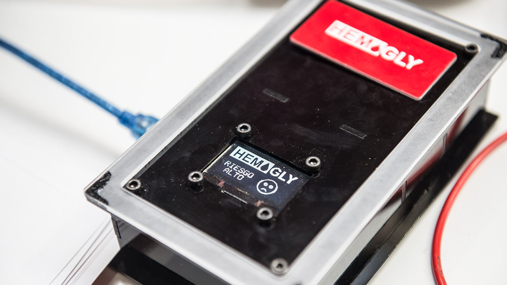 Hemogly es un dispositivo portátil que sirve para diagnosticar de manera rápida y sencilla si una persona es diabética. Para esto, no necesita de la intervención de un profesional, sino solamente una gota de sangre del paciente. Una vez perfeccionado, el desarrollo podría ser utilizado en cualquier sala de emergencias o en centros de atención primaria de salud. Fue finalista del Concurso Nacional de Innovaciones INNOVAR 2019.
