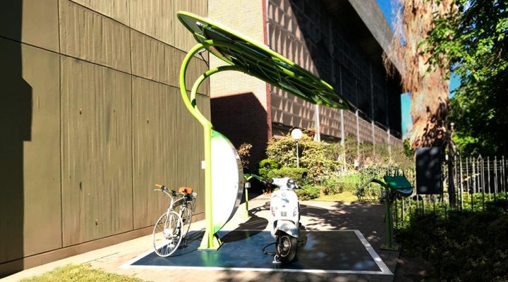 La nueva estación ubicada en la puerta del IEE frente al Parque de Mayo, una zona neurálgica de la ciudad de San Juan, no sólo permitirá cargar vehículos -como motos, monopatines y bicicletas eléctricas– sino también teléfonos celulares y computadoras portátiles.