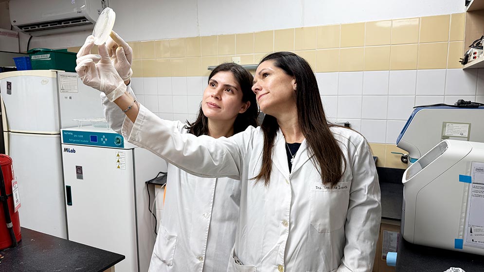 En el laboratorio de Aguas y Suelos del Instituto de Investigaciones para la Industria Química (INIQUI, CONICET-UNSa), un equipo de investigación liderado por las científicas del CONICET Verónica Irazusta y Verónica Rajal busca microorganismos capaces de producir moléculas de alto valor agregado, entre ellas los denominados biosurfactantes: sustancias “tensioactivas” de origen biológico que ofrecen una alternativa ecológica a los productos sintéticos. “Los biosurfactantes tienen mayores capacidades y son biodegradables, lo que reduce la contaminación ambiental”, explica Irazusta, responsable técnica del proyecto. “Su principal desventaja es el costo de producción comparado con los de origen sintético, por eso trabajamos en métodos más económicos utilizando subproductos industriales.”