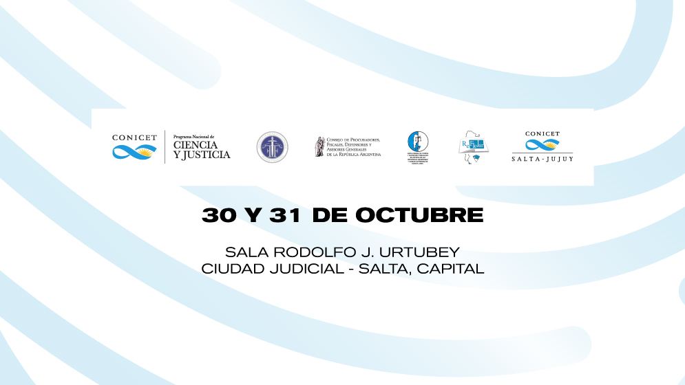 El evento, con la organización local del Centro Científico Tecnológico CONICET Salta-Jujuy, se realizará junto a la Asociación de Fiscales y Funcionarios del Ministerio Público Fiscal de la Nación (AFFUN), el Consejo de Procuradores, Fiscales, Defensores y Asesores Generales de la República Argentina, la Junta Federal de Cortes y Superiores Tribunales de Justicia de las Provincias Argentinas y Ciudad Autónoma de Buenos Aires (Ju.Fe.Jus.) y la Red de Escuelas de Capacitación Judicial (Reflejar).