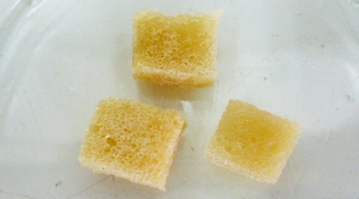 “Aislarlas en este material fue clave, ya que nos permitió aplicar los microorganismos con inmediatez”, afirma Mauricio Alessandrello, becario pos-doctoral del CONICET en el PROIMI y biotecnólogo. “Lo que nosotros queríamos conocer era la eficiencia de estas dos bacterias para remover petróleo del agua a distintas temperaturas. Para lograrlo, realizamos los ensayos adhiriéndolas e inmovilizándolas en goma espuma y vimos que los mejores resultados se obtenían al aplicar este proceso en aguas cálidas, de alrededor de 30 ºC. Sin embargo, en aguas a 4 ºC y 15 ºC también se obtuvo una buena remoción, sobre todo cuando las bacterias inmovilizadas fueron previamente almacenadas en la heladera a 4ºC”, destaca Alessandrello.