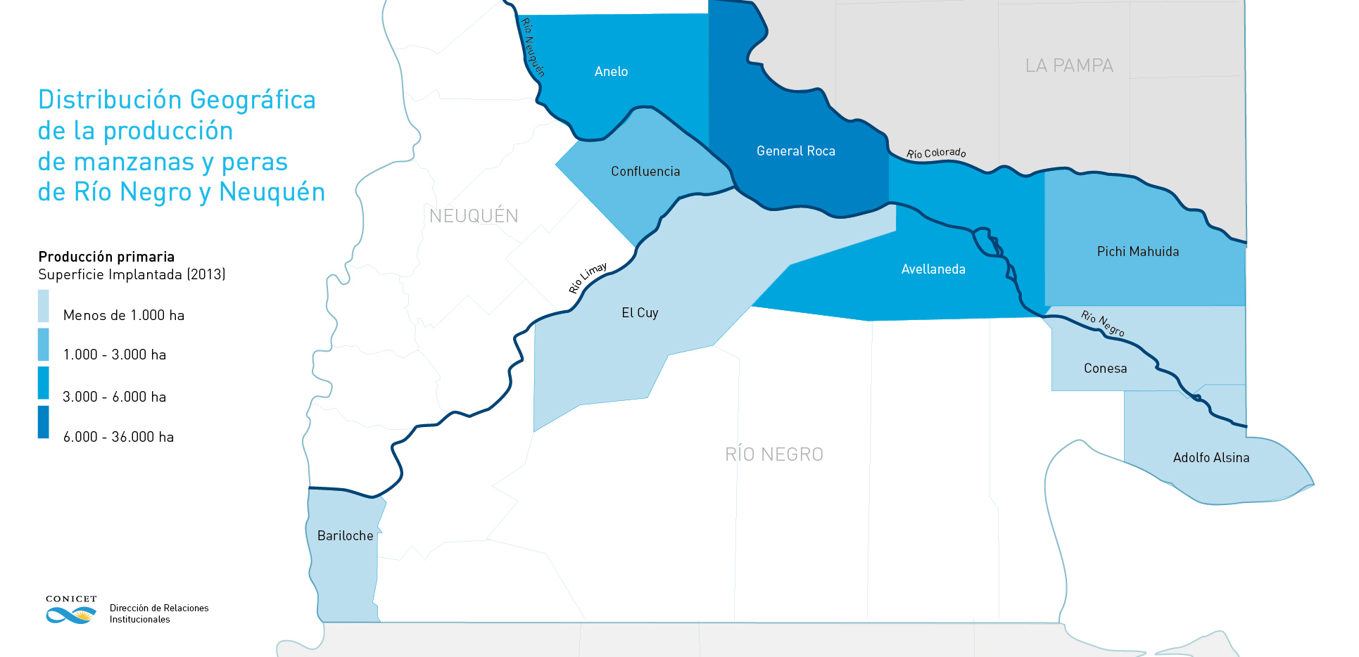 En 1910 en las provincias de Río Negro y Neuquén se inició la producción de fruta de pepita, principalmente manzana y pera, alentada por la colonización y la llegada del ferrocarril. Desde entonces miles de hectáreas en la margen norte del Alto Valle del Río Negro y en la confluencia del río Limay y Neuquén se destinan a su producción, ya que la fruticultura es la principal actividad económica de la región. Esta producción es destinada tanto al mercado interno -el consumo anual promedio por habitante ronda los 7 kg de manzana y de 2,2 kg de pera- como al internacional, convirtiendo al país en uno de los principales exportadores del mundo.