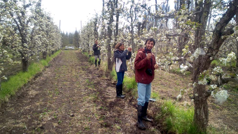 “Estamos evaluando distintos métodos de manejo de las abejas melíferas. La pera y la manzana florecen temprano y muchas de las colmenas se llevan a las chacras pero no tienen la sanidad apropiada, una reina con genética adecuada ni el tamaño poblacional necesario para poder tener la fuerza para polinizar correctamente. Estamos creando protocolos de estandarización de lo que serían las buenas colmenas. Comparamos manejo tradicional con estandarizado y estamos viendo qué combinación de número y disposición espacial de colmenas son necesarias en las chacras”, comenta Garibaldi.