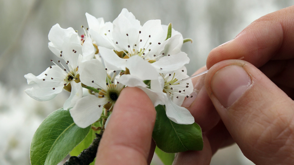 Teniendo en cuenta la importancia del buen transporte de polen, Lucas Garibaldi, investigador adjunto del CONICET en el Instituto de Investigaciones en Recursos Naturales, Agroecología y Desarrollo Rural (IRNAD) de la Sede Andina de la Universidad Nacional de Río Negro (UNRN) estudia, junto a su equipo de investigación, el desarrollo de tecnologías de procesos que tienen como objetivo cambiar el método de producción de peras y manzanas en el Alto Valle de Río Negro y Neuquén para lograr mejor cantidad y calidad de esos frutos a través de la optimización de la polinización.