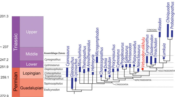 Vivió hace más de 251 millones de años durante el Pérmico Tardío, en la cuenca sudafricana del Karoo y, como todo cinodonte, parecía tener “dientes de perro”. Fue bautizado con el nombre de Vetusodon elikhulu por los investigadores del CONICET Fernando Abdala y Leandro Gaetano y sus colegas de Sudáfrica, Roger Smith y Bruce Rubidge, oficializando de esta manera la presentación de una nueva especie en la prestigiosa revista Zoological Journal of the Linnean Society.